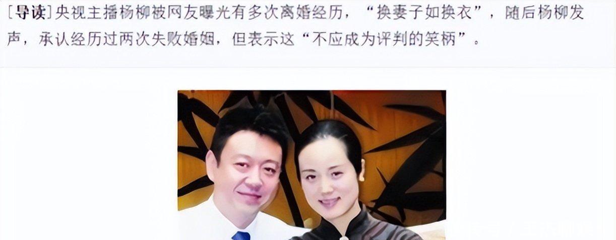 不少人都在猜测,杨柳可能是被央视给“踢出局”了,因为他的私人生活实在太精彩纷呈了。年起,杨柳的私生活就被大肆炒作,诸如“十年换了五个老婆”“央视里的负心汉”之类的标签,都被贴到了杨柳身上。